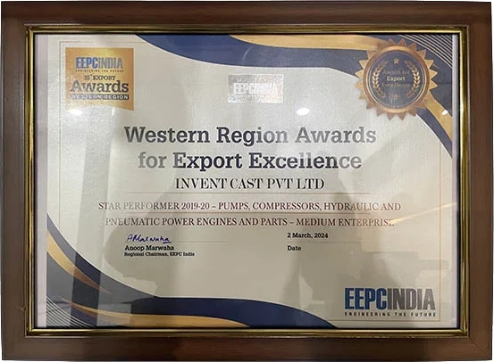 Star Performer Award for the year 2019-20 in the product group – Pumps, Compressors, Hydraulic & Pneumatic Power Engines and Parts (Medium Enterprise) from EEPC INDIA.